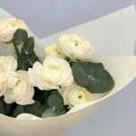 Эвкалипт – 4 шт.Лента атласная – 1 шт.Ранункулюс – 9 шт.Упаковка дизайнерская – 1 шт.