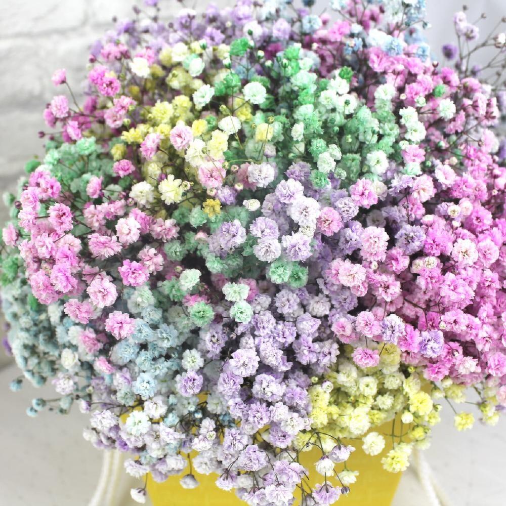 радужная гипсофила rainbow – 45 шт.Кашпо – 1 шт.Оазис флористический – 1 шт.любовь флориста (бесплатно) – 1 шт.подкормка для цветов chryzal – 1 шт.инструкция по уходу за цветами – 1 шт.