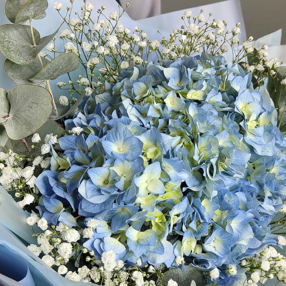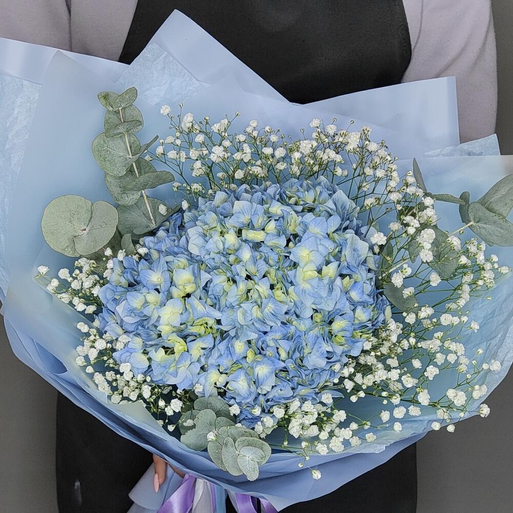 Букет из гортензии, гипсофилы и ароматного эвкалипта