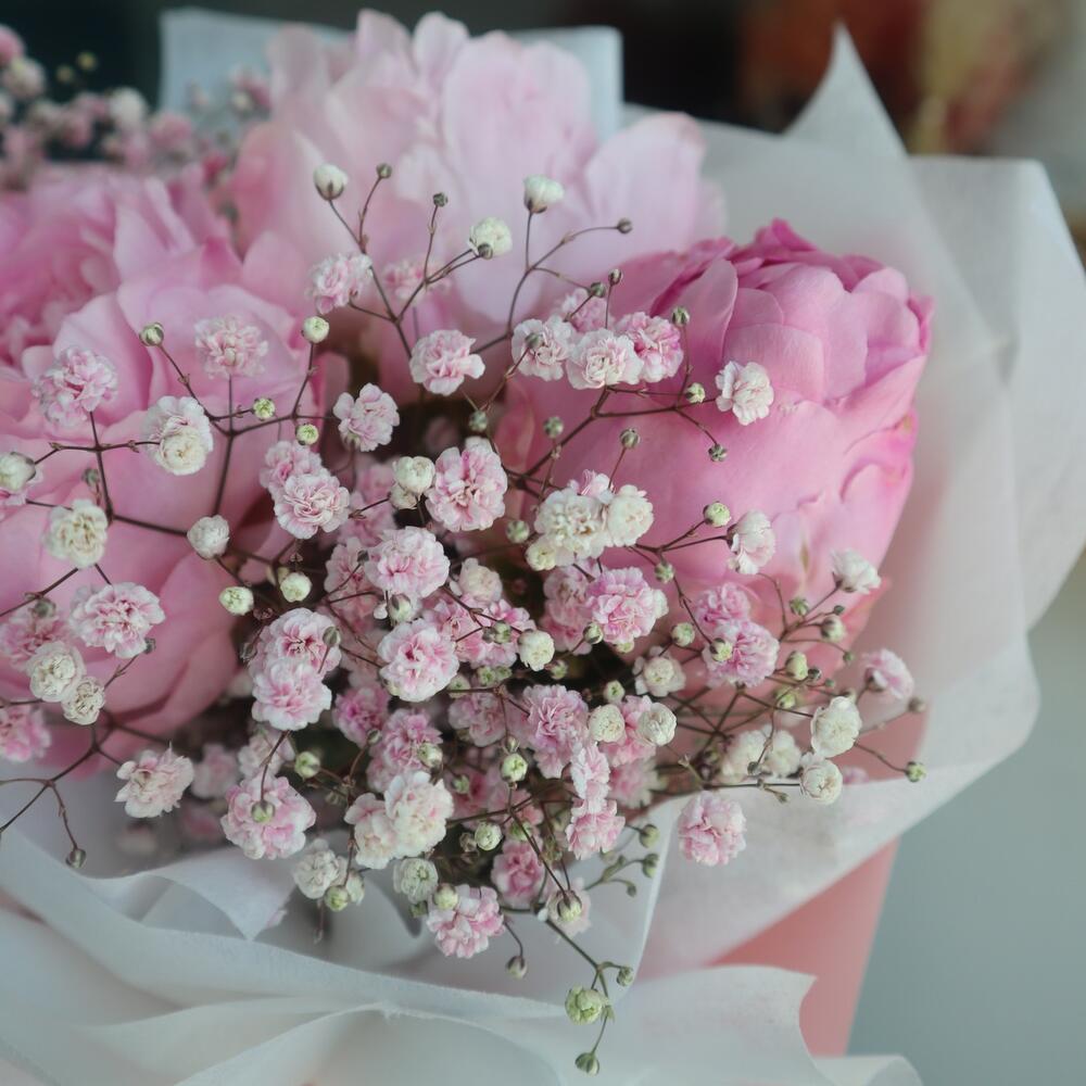 Гвоздики, Кустовые розы, Лизиантусы, Пионовидные розы, Розы