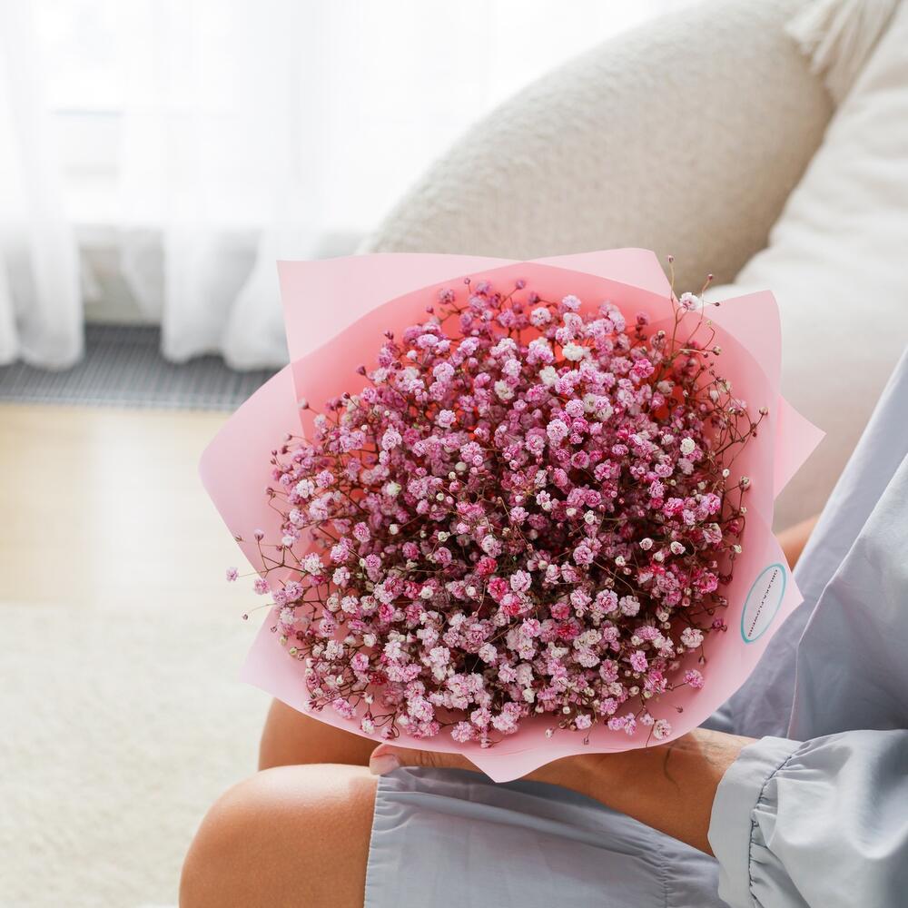 Очаровательный букет из воздушной гипсофилы. Ни одна дама, точно не останется равнодушной при виде такого букета .Инструкция по уходу за цветами прикреплена к каждому заказу.Цветы гипсофилы отличаются стойкостью и даже при высыхании не теряют, декоративности и цвета. Что позволяет, долгое время украшать интерьер в качестве сухоцветов.Подпишем открытку с вашими пожеланиями бесплатно