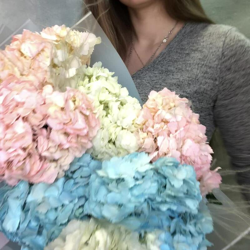 Гортензия – 7 шт.Рускус – 2 шт.Упаковка дизайнерская – 2 шт.стифа пучок – 3 шт.