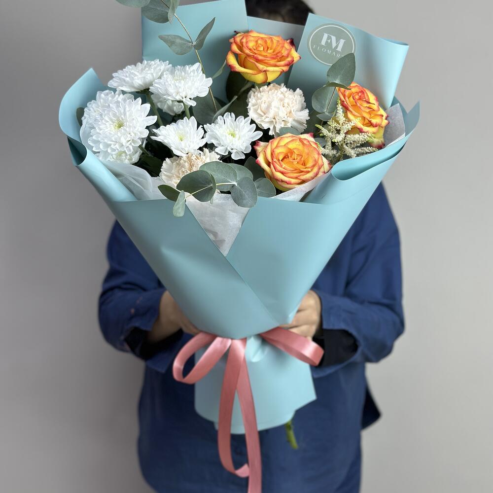 Гвоздики, Кустовые розы, Пионовидные розы, Розы