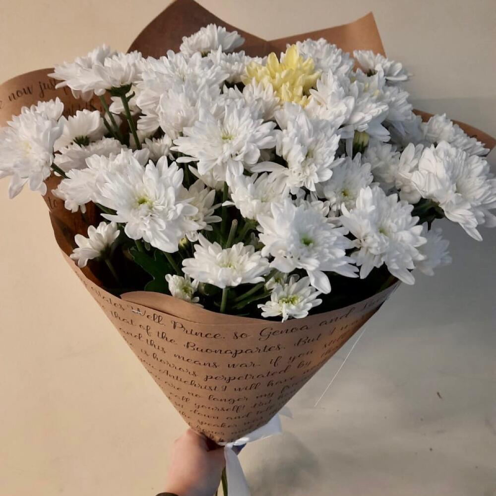 хризантема кустовая в ассортименте – 9 шт.крафт бумага упаковочная – 1 шт.