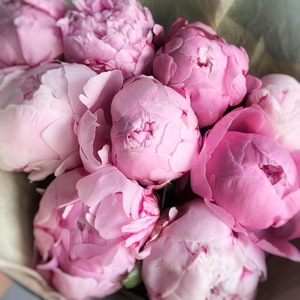 Лента – 2 шт.Пион – 9 шт.Тишью – 2 шт.Упаковка дизайнерская – 4 шт.инструкция по уходу за цветами – 1 шт.хризал – 2 шт.