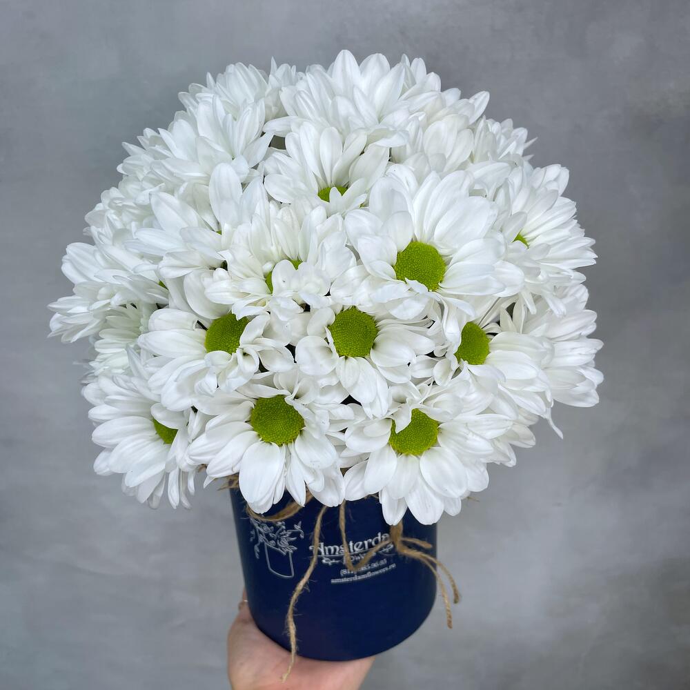 Коробка шляпная – 1 шт. Хризантема кустовая Бакарди – 7 шт. Оазис флористический – 1 шт.