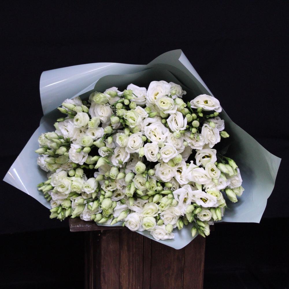 Лента атласная – 1 шт.эустома белая – 21 шт.Пленка дизайнерская – 2 шт.