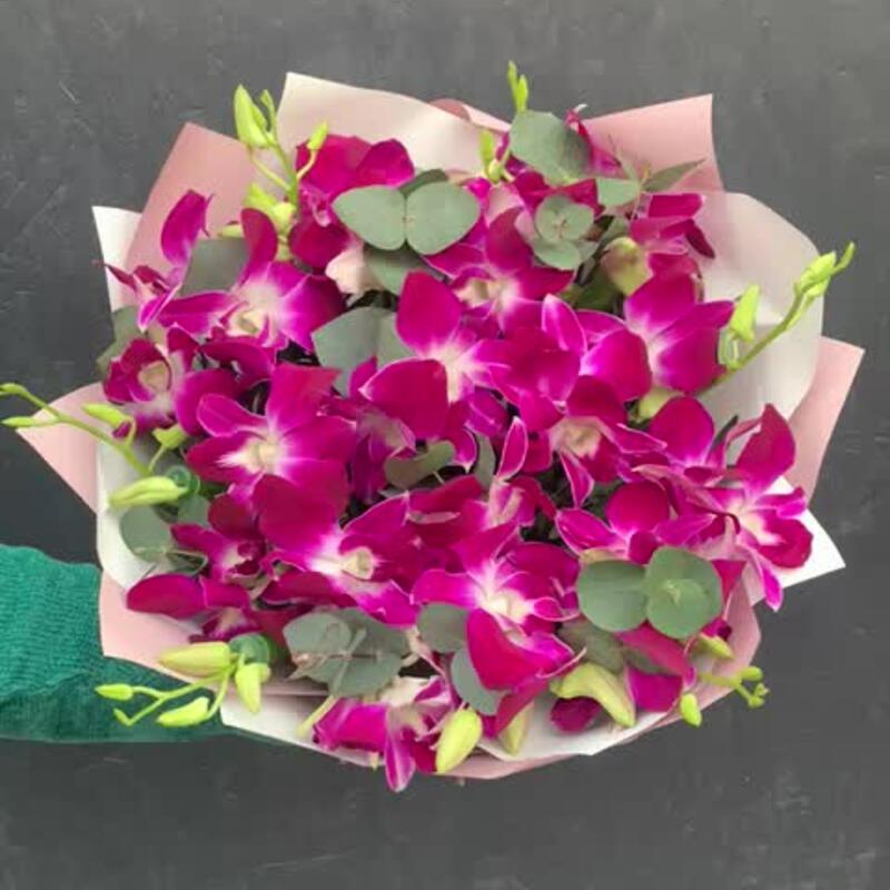 Дендробиум – 51 шт.удлинитель для орхидеи – 25 шт.Фисташка – 15 шт.Эвкалипт – 9 шт.Упаковка дизайнерская – 2 шт.Лента атласная – 1 шт.
