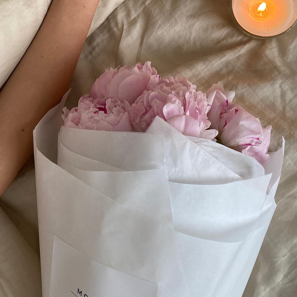 Тишью – 2 шт.Крафт – 2 шт.Карточка для подписи – 1 шт.крафтовый пакет – 1 шт.пионы – 3 шт.