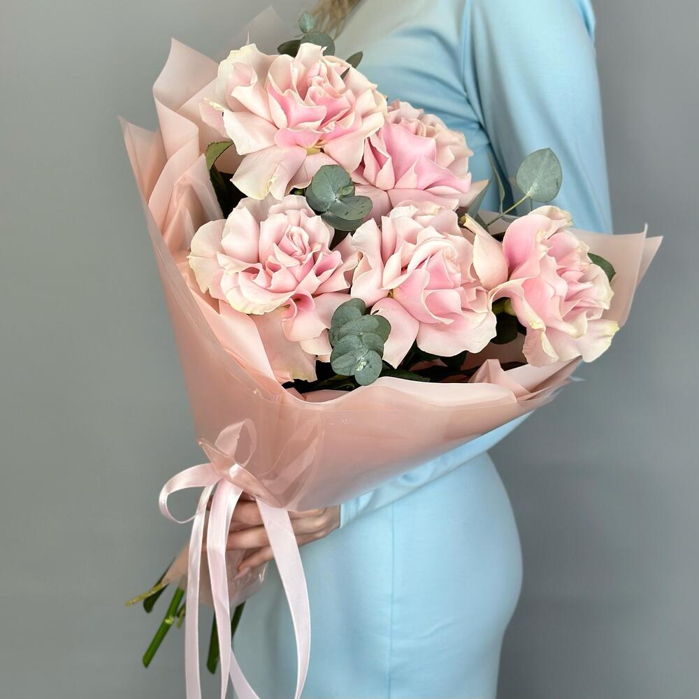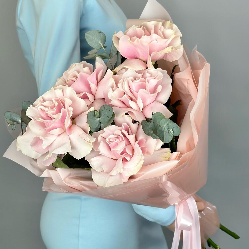 Букет французских роз с эвкалиптом