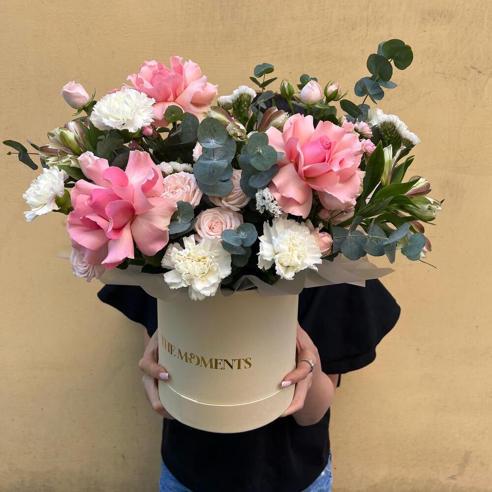 Альстромерии, Гортензии, Кустовые розы, Лизиантусы, Розы, Хризантемы