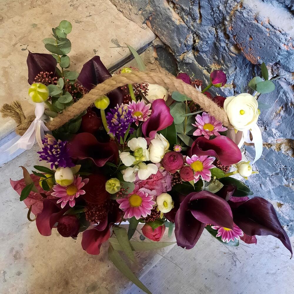 Ящик деревянный – 1 шт.Оазис флористический – 1 шт.Калла – 11 шт.Пион – 1 шт.Гиацинт – 1 шт.Гвоздика – 1 шт.Роза пионовидная кустовая – 1 шт.Скиммия – 1 шт.Антуриум – 1 шт.Эвкалипт – 1 шт.