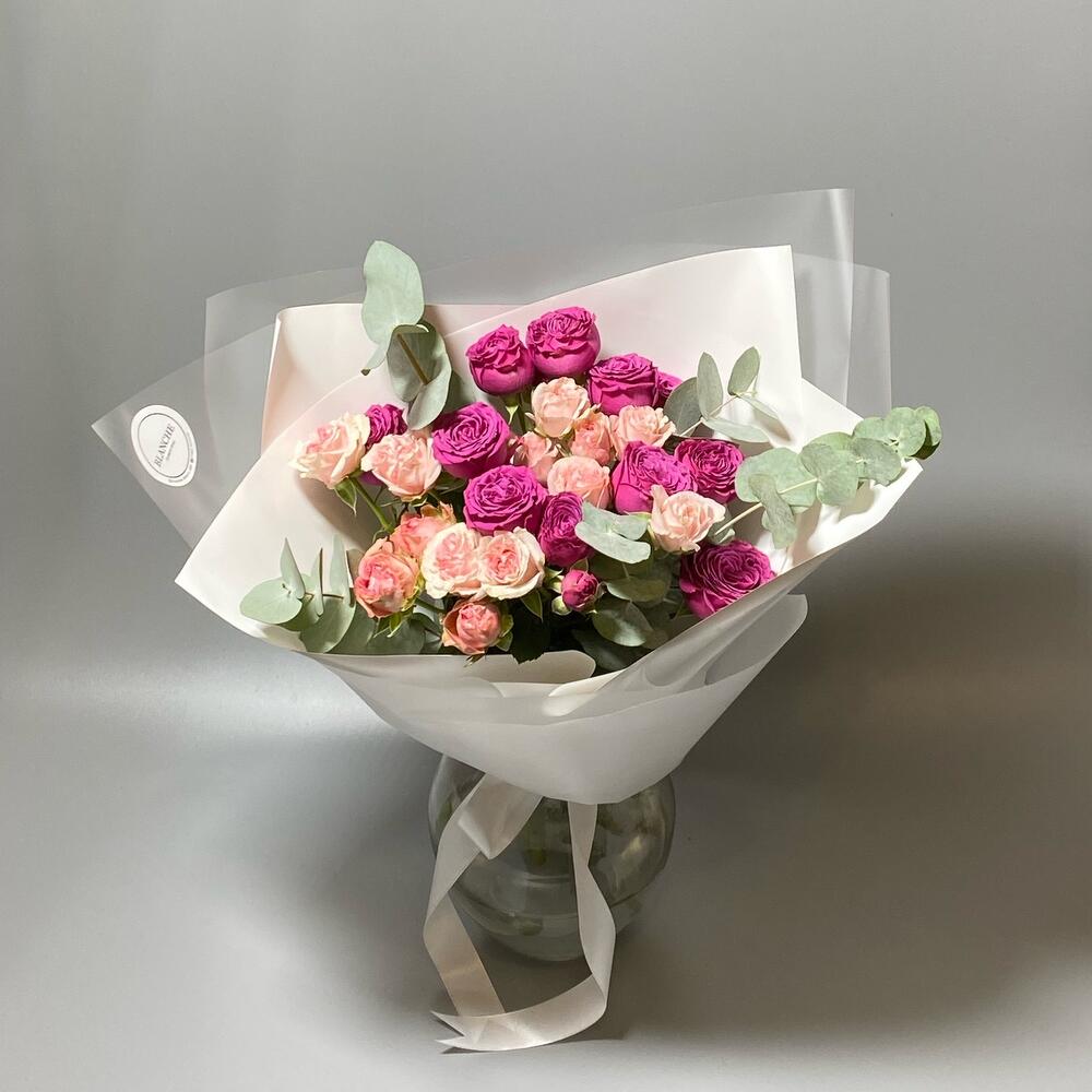 Кустовые розы с эвкалиптом