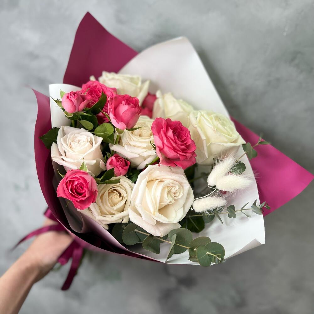 Кустовые розы, Лизиантусы, Розы, Сухоцвет