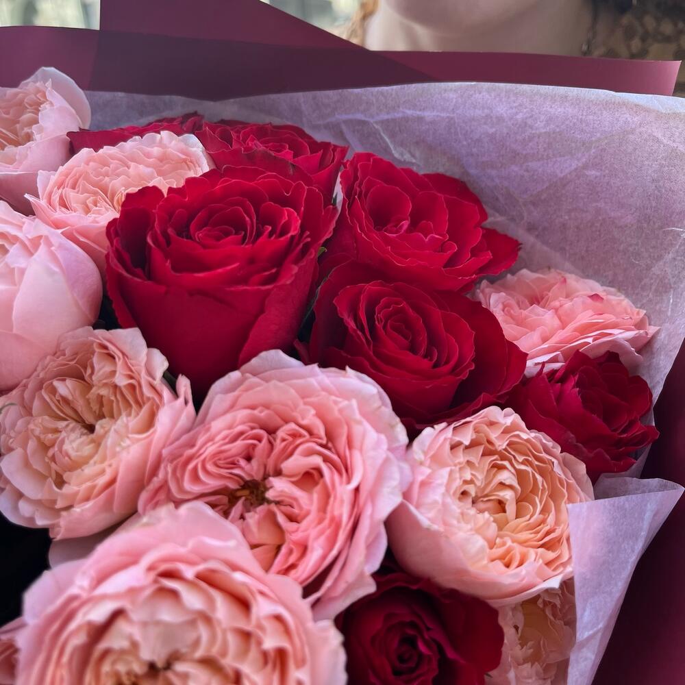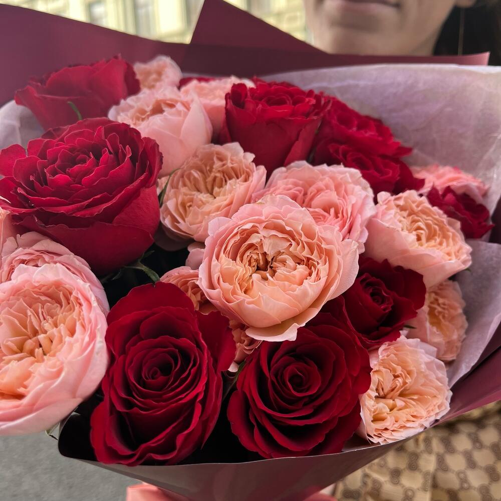 РУФЬ премиум монобукет из красных роз и пионовидной Джульетты