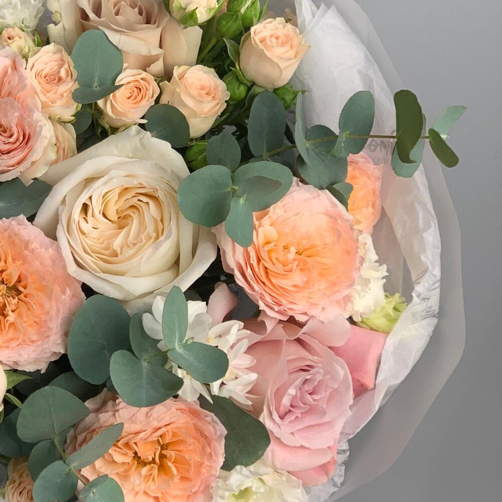 Альстромерии, Кустовые розы, Лизиантусы, Пионовидные розы, Розы, Ромашки